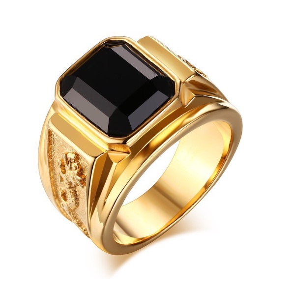 Nhẫn nam phong thuỷ khắc rồng may mắn gắn đá đen, nhẫn nam Titan Cao Cấp free ship
